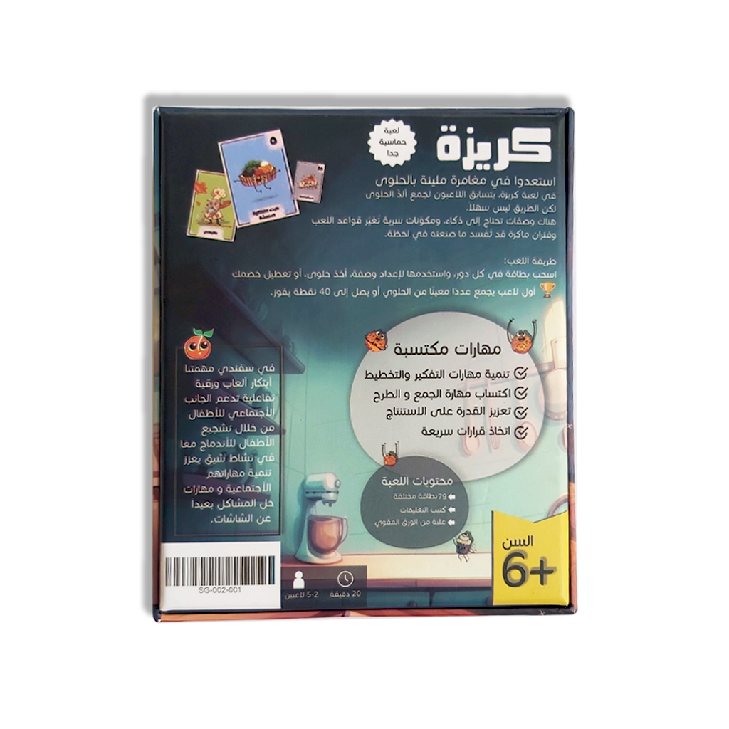 من خلال مجموعة متنوعة من البطاقات والتحديات، تتيح كريزة للأطفال تطوير مهاراتهم الذهنية بطريقة تفاعلية وممتعة، وتساعدهم على الربط بين المعلومات، اتخاذ قرارات سريعة، وبناء استراتيجيات للفوز.